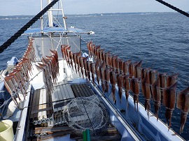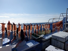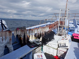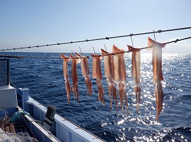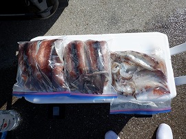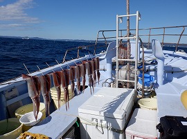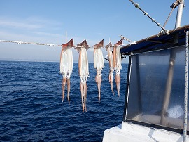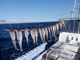 スルメイカ・海中公園沖の水深155m~205m皆さんブランコ仕掛けでやりメジマグロが居たりクジラを見たよと言う船長さんも居てそのせいか?反応に当てても渋く大中型スルメイカが1杯づつたま~に型が出る程度で小型ヤリイカ少し混じりを一人1杯❓~5杯(2名)の釣果でした。ハモノが居なくなれば期待出来そうですが・・・ご予約をお待ちしています◎