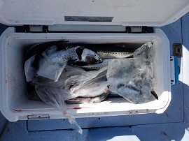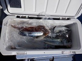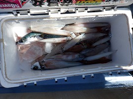 寒サバ・寒サバを釣りたいと言うお客さん1名で出船。北風が強くウネリも有って釣り辛かったです(-.-)灯台沖の水深170m~215mゴマサバが多く中小型マサバ&大アジは3割位程度でポツリポッツリの食い後半は反応が少なく成りお気遣いを頂きお土産に成ったのでと10時に早上がりしました明日は寒サバ~ヤリ&スルメイカで出船をしますご予約をお待ちしています。