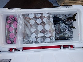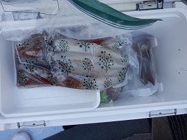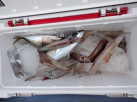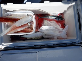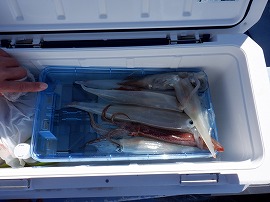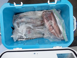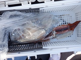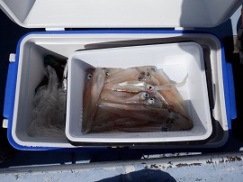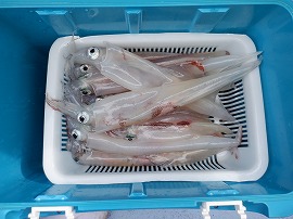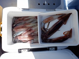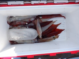 ヤリイカ専門・灯台沖の水深165m~210m風が弱くナギでした。始めはサバの邪魔が多くスルメイカがポッツリポッツリの乗り9時過ぎに東沖でやって居た船の船長さんがヤリイカがポツリポツリ乗って来るよ!と教えてくれたので急行したら間に合って中小型ヤリイカ(中型主体)が二流しポツポツ乗り3点4点掛けも出て一人4杯(リールトラブル者)~23杯大体の人が15杯前後でお土産に成りました◎明日は寒サバ~ヤリイカのリレー釣りで出船をしますご予約をお待ちしています。