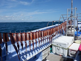 水温24.6~25.2℃ 曇時々小雨 北北東風4~6m 波1.3m すみ 込み逆潮0.5N