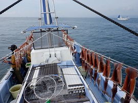 スルメイカ・灯台沖の水深190m~200m皆さんブランコ仕掛けでやり近くでやっていた船は誰かに型が出るよと言ってましたが何故か?反応に当ててもなかなか型を出してもらえずウロウロかなり時間が経ってから1杯上がりさあこれからと思いましたが7時半頃から強風に成ってしまい海もだんだん悪く成りダウン者も出て10時に早上がりしました。船中1杯の大苦戦でした(涙)明日は定休日で日曜日はスルメイカ釣りで出船をしますご予約をお待ちしています◎